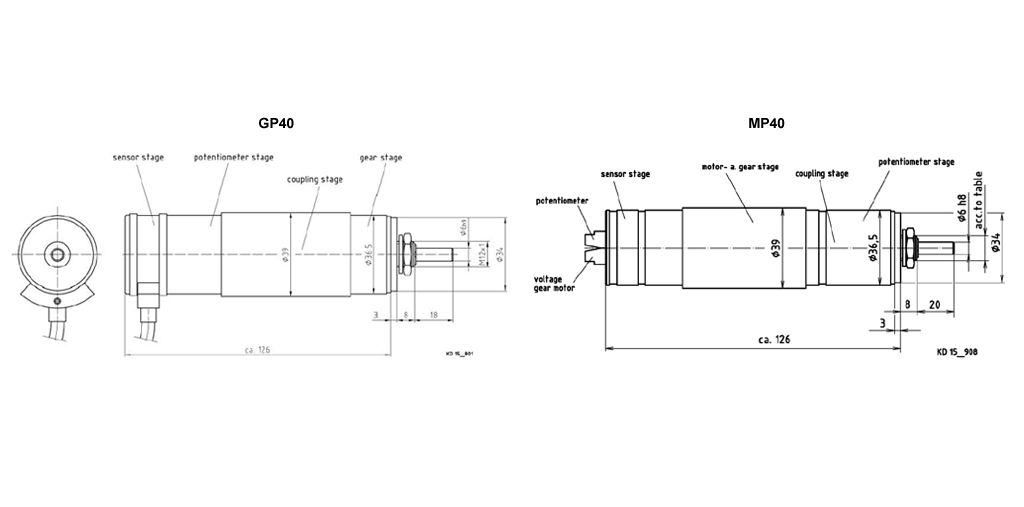 The potentiometers are using our multiturn potentiometer type DMG23 & DMG24M and our precision potentiometers of types DP18 and DP113. All potentiometers are equipped with end stops. In order to protect the gear against overloading a special slide coupling is integrated. In addition we offer to provide the gear potentiometer with further components such as a limit switch (only singleturn-potentiometers) and respective cam or segment disc. The limit switches can either be integrated in a construction stage or can be mounted on the rear-side. The gear potentiometer has a robust aluminium housing (optionally stainless steel housing) and is equipped with central fixing M12x1. Additionally it can be furnished with a sensor output signal (0/4…20mA or 0…10VDC). The connection of the gear potentiometer is effected by cable or terminal block.