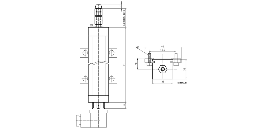 The precision linear potentiometer type LL32 reliably measure linear paths for industrial application. Conductive plastic is chosen as resistor element. Standard paths are available up to 1.000mm. The anodized aluminium housing is very robust and offers protection against outside influences. The standard version is available up to protection class max. IP62. Sliding bearing ensures smooth running. The absolute output signal can be displayed by an integrated measuring transducer as 0…10VDC oder 0/4…20mA signal. The linear potentiometers have excellent linearity values and high repeatability.