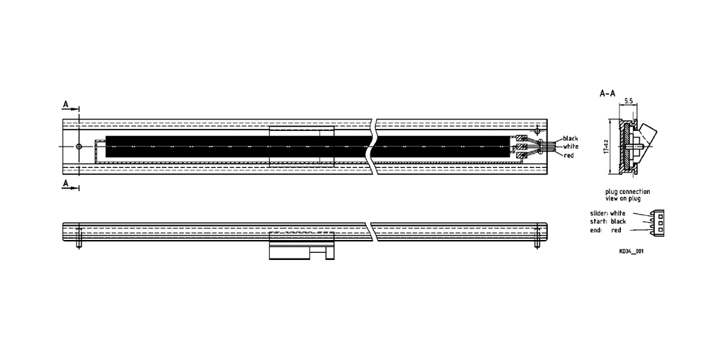 The precision linear potentiometer of the LLWA series is a flat displacement transducer based on conductive plastic. The displacement transducer can be used in confined applications due to its space-saving design. Despite its open design, the LLWA product serie has its own slider system. The profile allows easy installation.